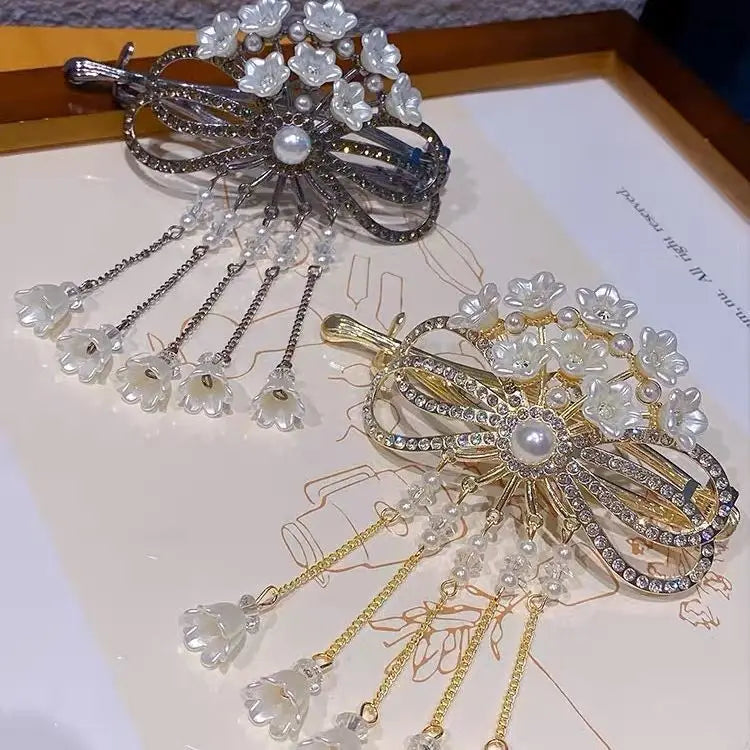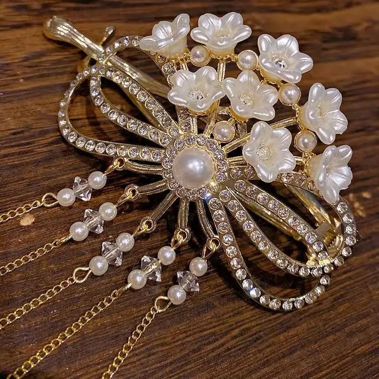 مشبك شعر فاخر يمنح تسريحة الشعر لمسة أناقة راقية. تصميمه يعتمد على زهور لؤلئية متلألئة مع تفاصيل دقيقة تضيف بريقًا ناعمًا يلفت الأنظار. القطعة تجمع بين الجمالية الكلاسيكية واللمسة العصرية، ما يجعلها مناسبة للمناسبات، الأعراس، الحفلات، وحتى الإطلالات اليومية الراقية.