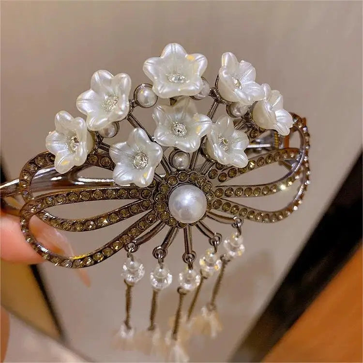 مشبك شعر فاخر بزهور لؤلئية وتصميم راقٍ يكمّل إطلالتك الأنيقة