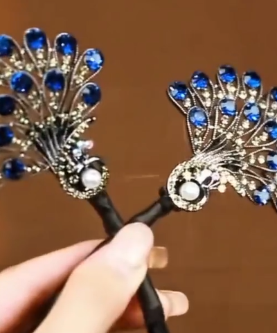 مشبك شعر ملكي بتصميم الطاووس – لمسة أناقة مميزة